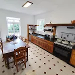 A Airtegal Casa Do Pepe Vila está equipada com chaleira elétrica, refrigerador e forno numa cozinha comum.